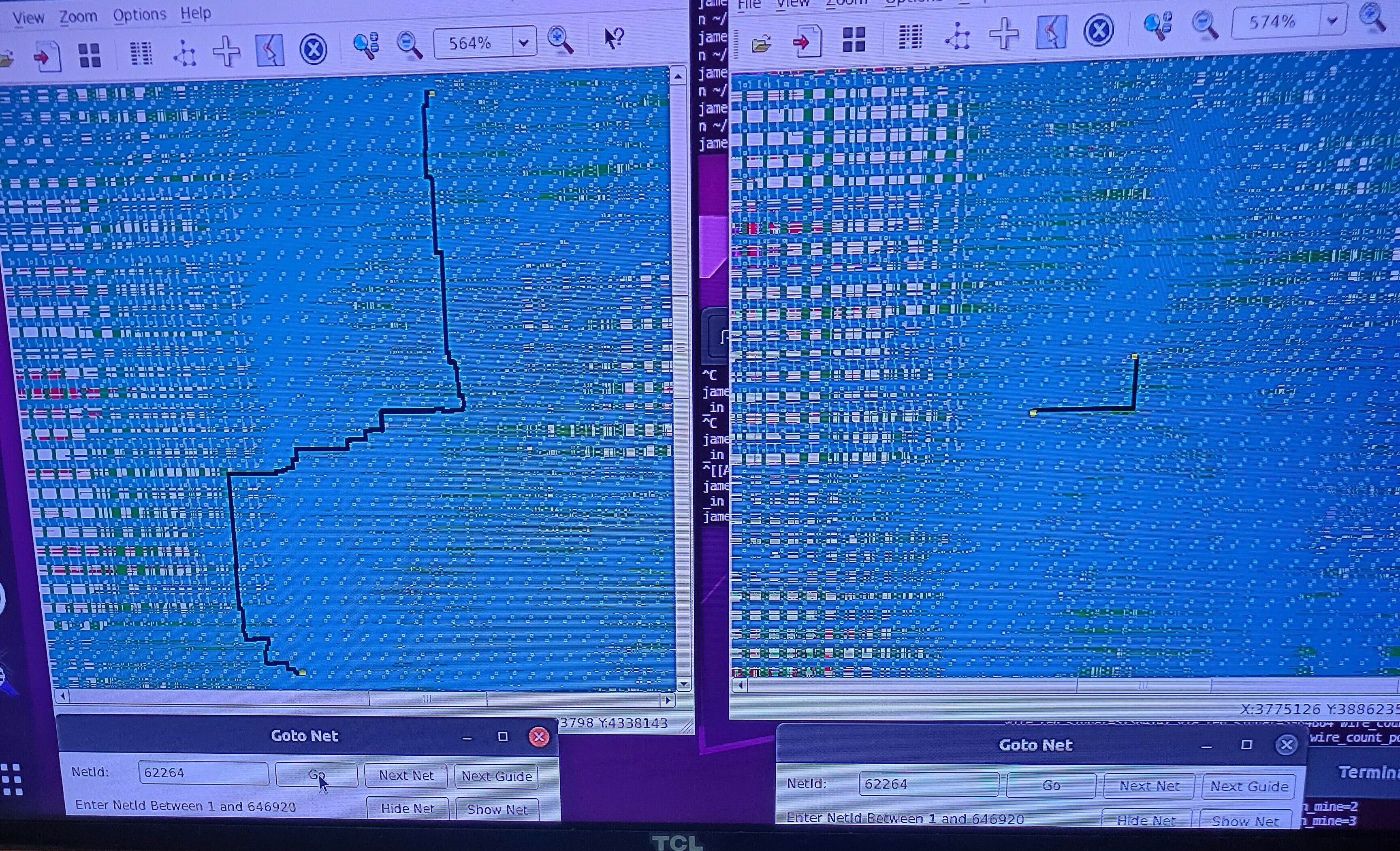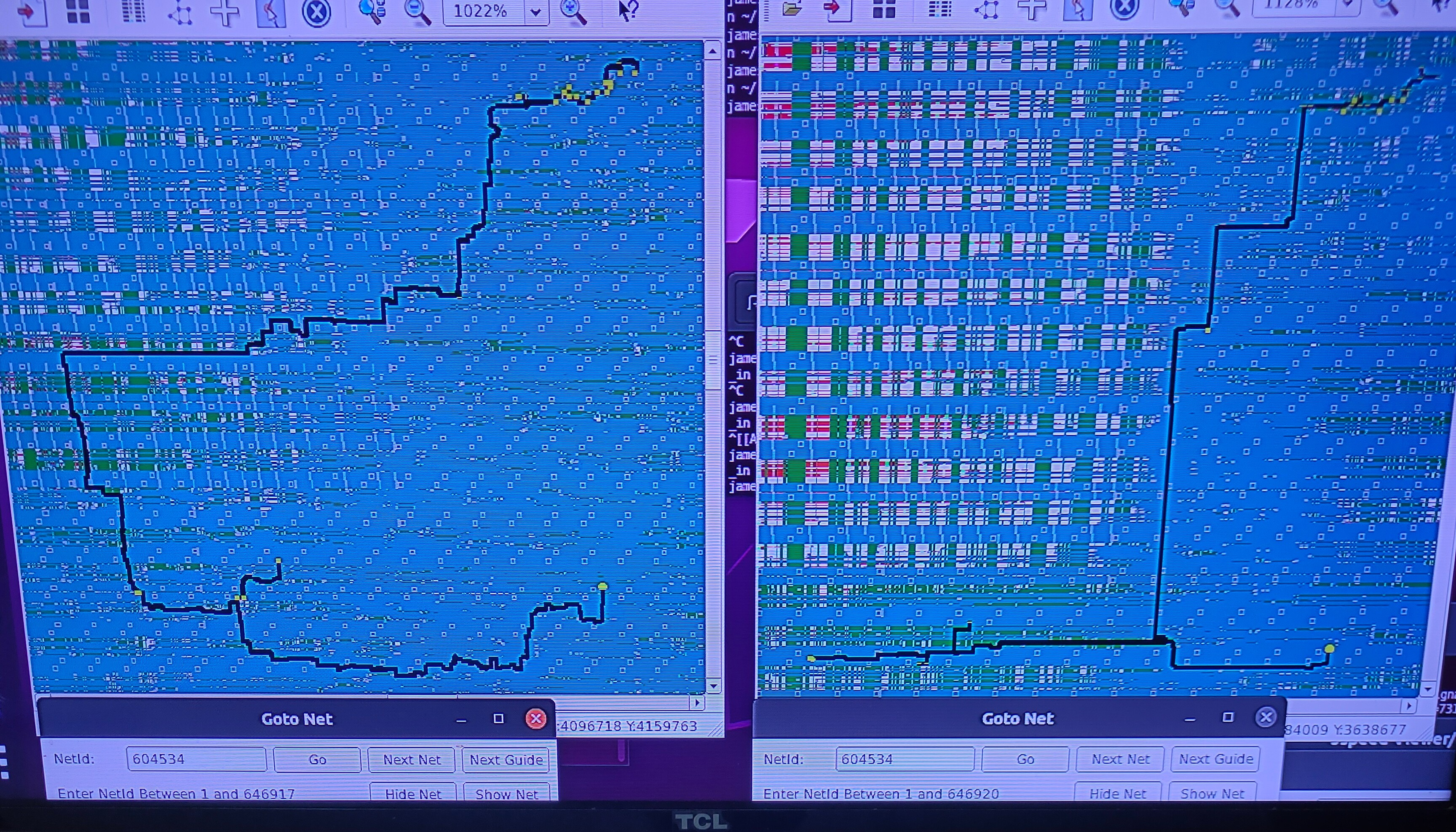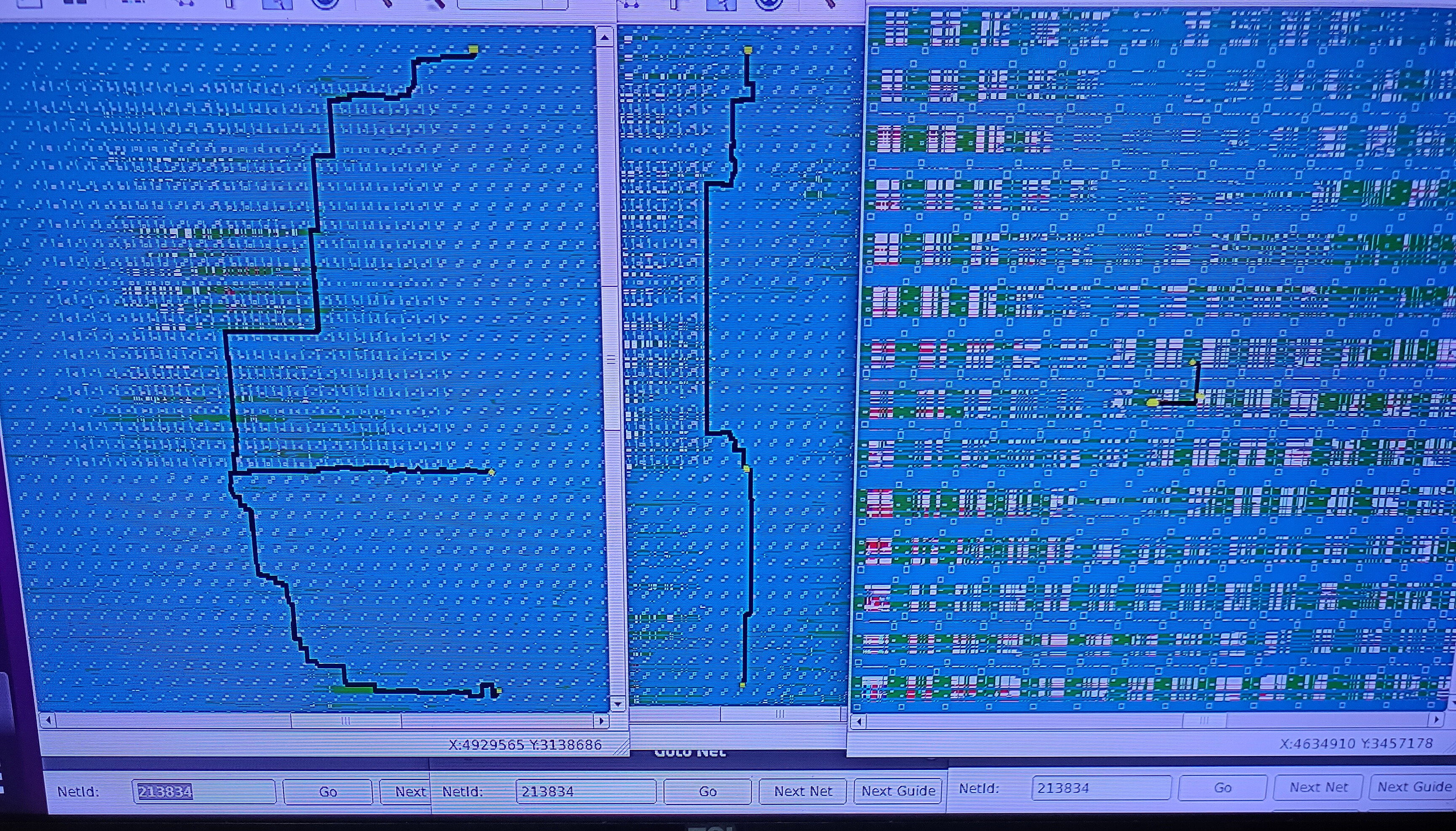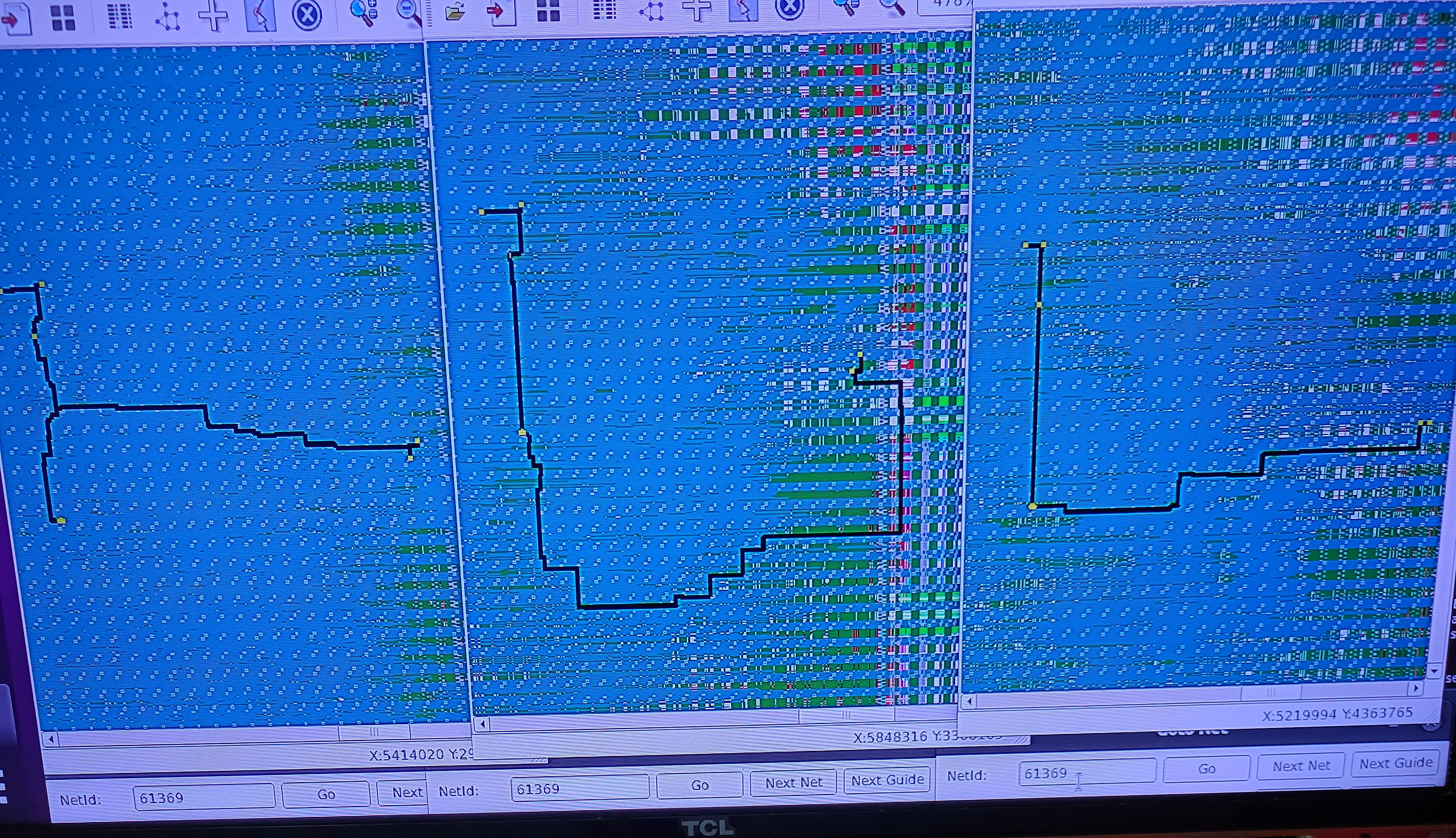 Figure 4: comparison of case 0, case 1, and case 2(longer, zoom out more), from left to right, for the worst net in design d65 Note: in figure 4, apparently, both case 1 and case 2 lose to case 0.